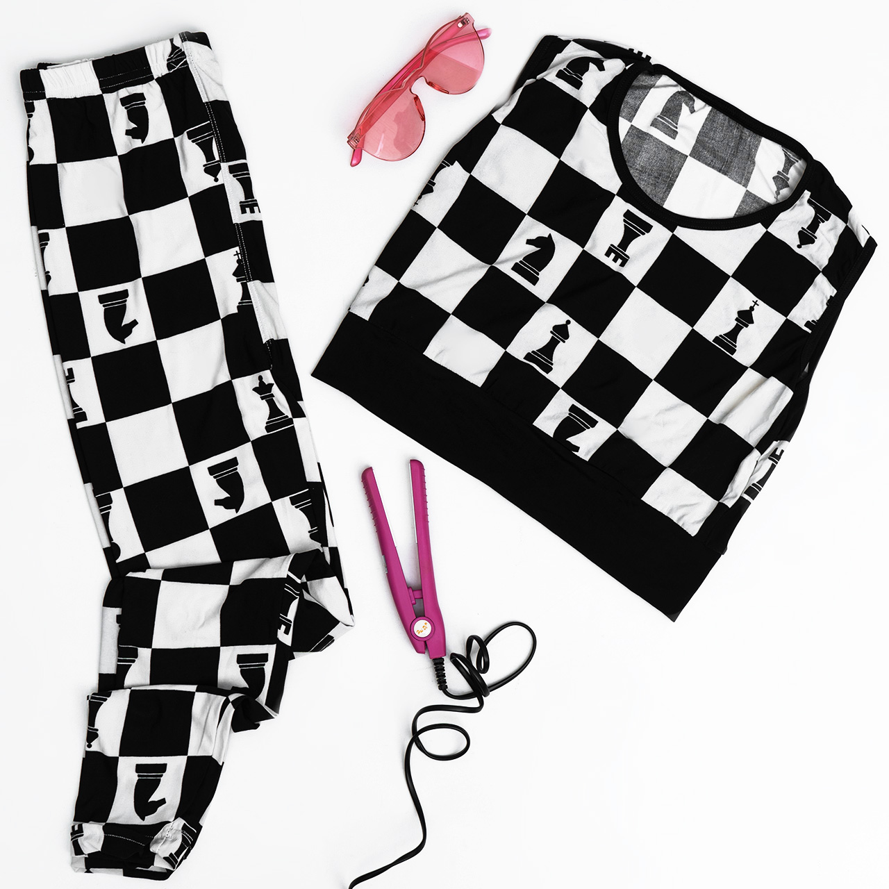 ست نیم تنه و ساپورت شطرنجی دخترانه مدل ۳۴۸