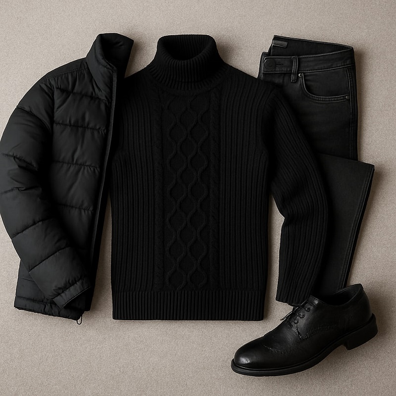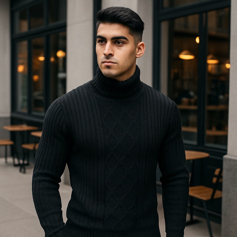 پلیوربافت مردانه مشکی یقه اسکی مدل Hakan